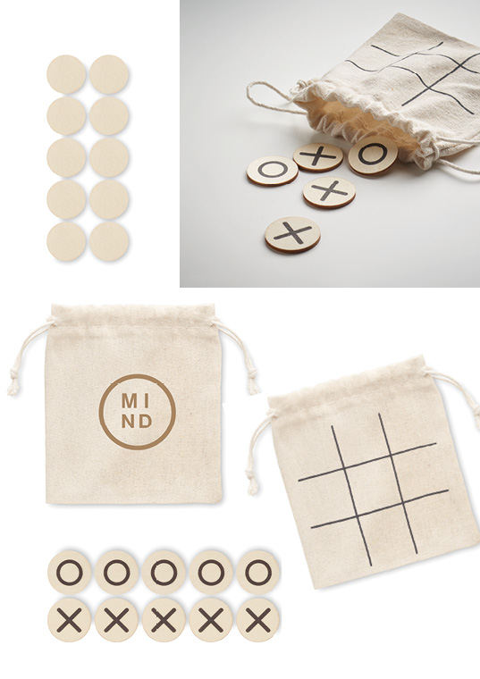Størrelse 13 x 14,9 x 14,9 cm | Materiale Tre, Bomull | Farger Natur | Inneholder 1 Bomullspose + 9 spillbrikker i tre | Conscious Promotion produkt | Gave | Merchandise | Give away | NB: Ikke anbefalt til barn under 3 år.