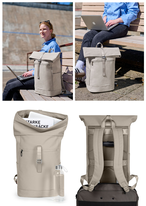 Materiale 100 % polyester, PVC-fri | Vekt Lettvekt | Detaljer Polstret laptoprom, frontlomme, sidelommer, rullelås, ekspanderbare volum | Komfort Polstret bæresele og rygg, bærehåndtak | Trykkmuligheter Logo og design med brodering eller trykk | Profilering Firmagaver, reklameartikler, events, messer | Størrelser H 43 × B 28 × D 16 cm | Bruksområde Laptop, skole, arbeid, reise, hverdag | Merke STAR | Opprinnelse Amfori BSCI-revidert fabrikk | Pakket 20 stk per kartong | Garanti 3 år | Volum Ca. 19 liter