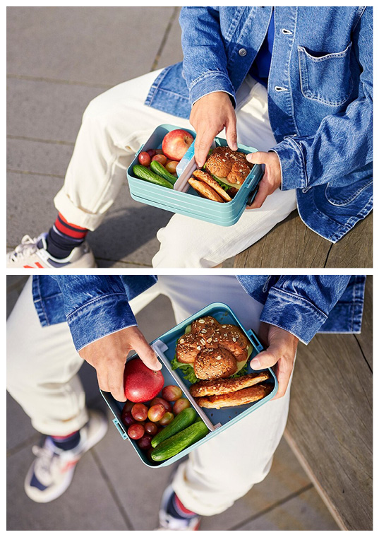 MEPAL LUNSJBOKS TAKE A BREAK LARGE er en robust matboks med kraftige sideklips som gir sikker lukking. Den tette forseglingen holder maten frisk og velsmakende hele dagen. En praktisk skillevegg gjør det enkelt å fordele brød, frukt eller grønnsaker uten at de blander seg. Med en kapasitet på 1500 ml kan den romme 4 generøse sandwicher eller 8 brødskiver. Matboksen tåler mye og rengjøres enkelt i oppvaskmaskin.