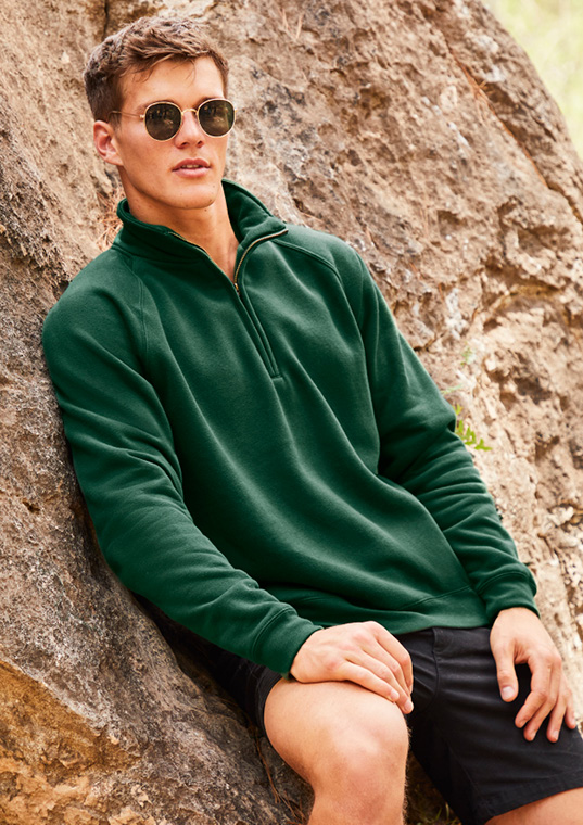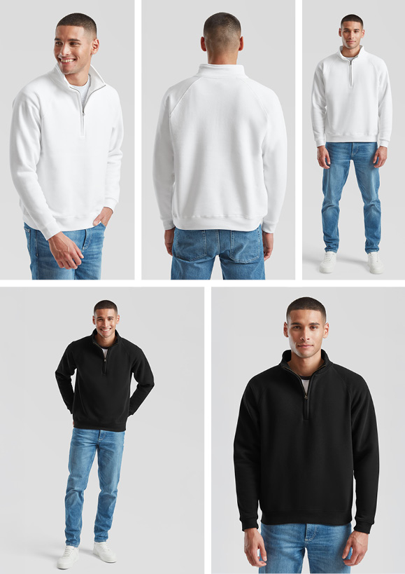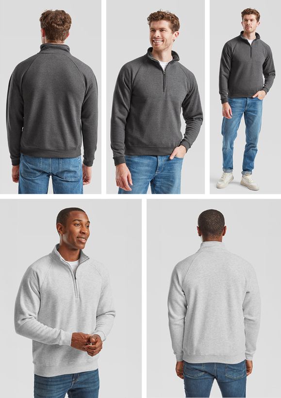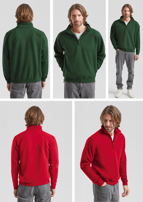 PREMIUM ZIP NECK SWEATER fra Fruit of the Loom® er en komfortabel og slitesterk unisex genser med glidelås i halsen. Laget av 70 % kjemmet bomull og 30 % polyester, som gir en myk følelse, god varme og lang levetid. Stoffet har en vekt på 280 g/m², noe som gjør den robust, men fortsatt behagelig lett. Raglanermer gir bedre bevegelighet og et sporty uttrykk.