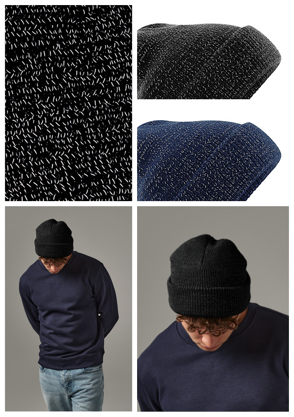 REFLECTIVE BEANIE fra Beechfield® er en moderne og synlig beanie med brettet mansjett og svært reflekterende fibre som øker synligheten i mørket. Luen har dobbelt lag strikk som gjør den behagelig og varm samtidig som den beholder formen. Det moderne snittet er one size og passer de fleste hodestørrelser og gir et stilrent uttrykk.