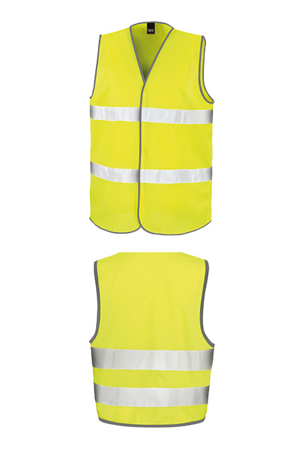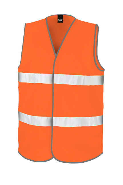 REFLEKSVEST CORE ENHANCED VISIBILITY VEST fra SAFE-GUARD av Result®. En synlig og lett vest i 100 % polyester som passer perfekt til profilering og sikkerhet. Den er romslig i størrelsen og er laget for å bæres utenpå andre plagg. Vesten har grå kantbånd og 50 mm påsydde reflekstaper rundt midjen som gir god synlighet i mørket og ved dårlige lysforhold.