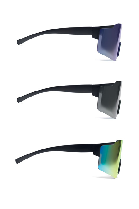 Dimensjoner 14 x 5,5 x 12 cm | Materiale PC-plast (Polykarbonat) | UV-beskyttelse UV400 | Glass Speilglass med blå, svart eller multifarget coating | Godkjenning CE-merket | EN ISO 12312-1 | PPE EU Regulation 2016/425 | REACH Regulation (EC) No 1907/2006 | Kategori 3 – høy beskyttelse mot sollys | Emballasje Leveres i individuell polybag | Miljø Materialet kan resirkuleres | Minimumsbestilling 30 stk.