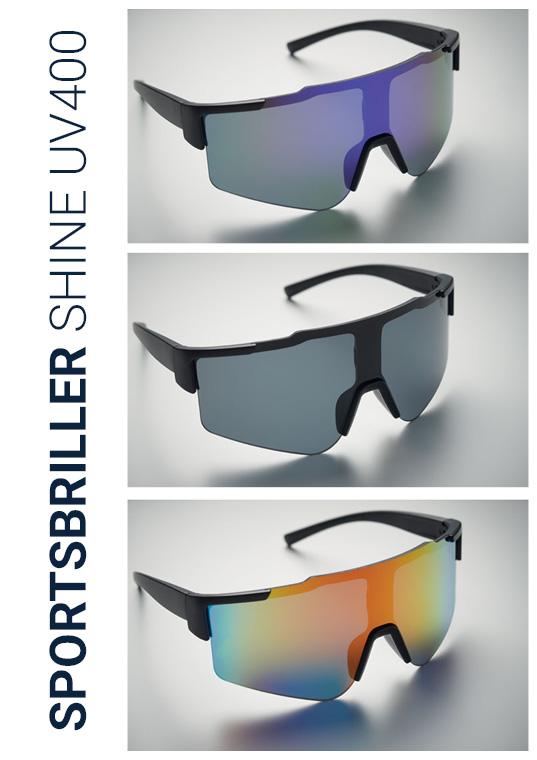 Sportsbriller SHINE kombinerer stil, funksjon og merkevarebygging. Med trykk av logo blir de et effektivt og synlig profilprodukt for bedrifter, lag og foreninger. Brillene er lette å dele ut, lette å bruke – og lette å like.