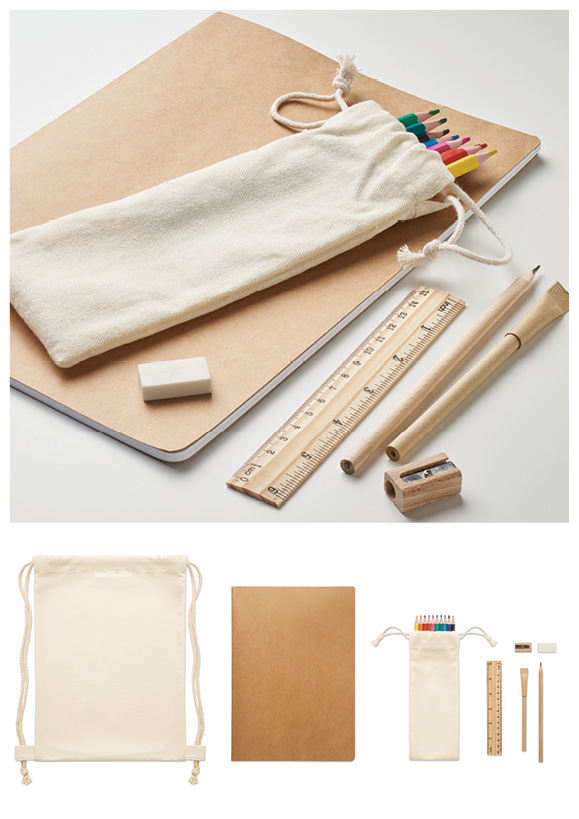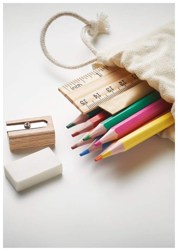 Materiale Bomull, tre, papir, plast | Vekt Lett og enkel å bære | Detaljer Komplett tegnesett med 5 deler, 10 fargeblyanter og tegnebok | Komfort Myk pose med snøring gjør den enkel å lukke | Trykkmuligheter Silketrykk på gavepose og tegnebok, trykk på pencil case | Profilering Stor trykkflate på pose gir god synlighet for logo | Størrelser 35 x 26 cm | Bruksområde Perfekt til skoler, barnehager, messer, arrangementer og gaver til barn | Merke amfori BSCI-sertifisert produksjon