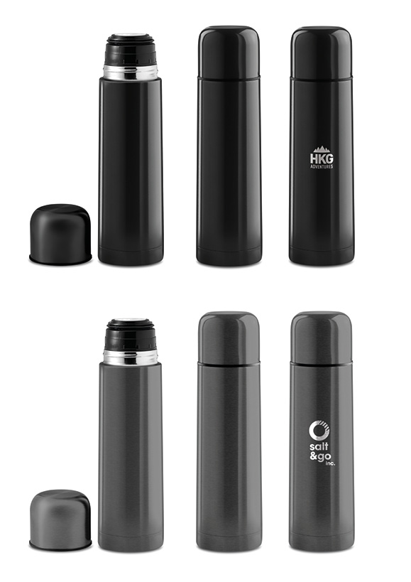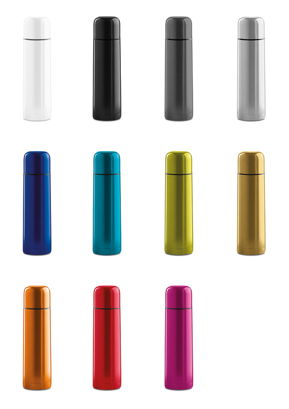 TERMOS RUSTFRITT STÅL 500 ml leveres leveres med lasergravering, rundtrykk, sublimering eller 360° digitaltrykk. Individuelt pakket i polybag og eske. Minimumsantall ved bestilling er 25 stk per kartong.