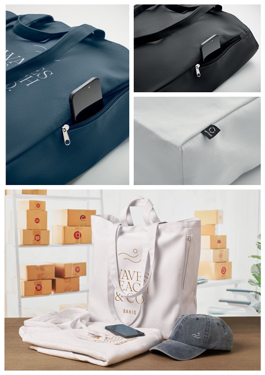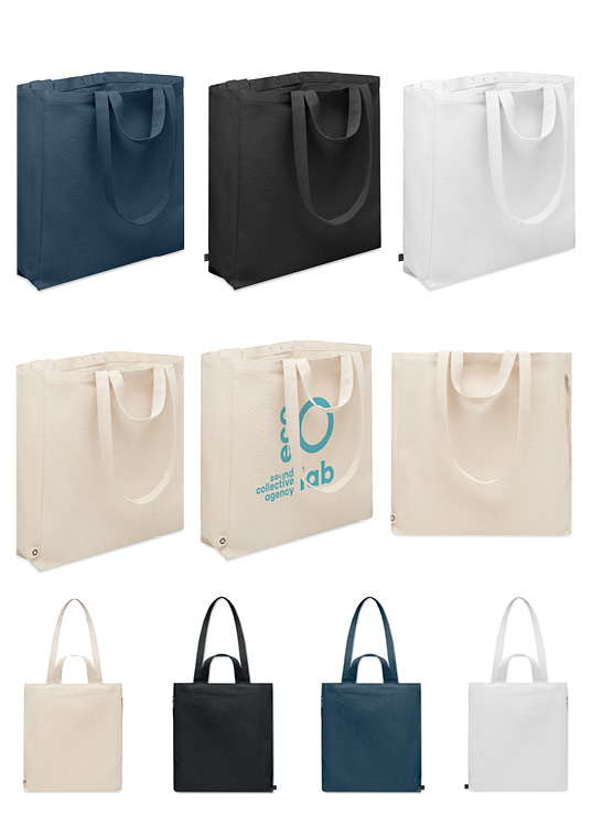 Materiale 70 % resirkulert bomull og 30 % resirkulert polyester (RPET) | Vekt 380 g/m² | Volum 18 liter | Håndtak Korte og lange for fleksibel bæring | Detaljer Sidelomme med glidelås for trygg oppbevaring | Overflate Naturlig og egnet for trykk | Dekorasjon God plass til logomerking | Produksjon Velg lagermodell eller spesialproduksjon med all-over-trykk | Bærekraft Materialet er gjenvunnet og biologisk nedbrytbart | Sertifisering amfori BSCI auditert fabrikk | Levering Rask levering på lagermodeller