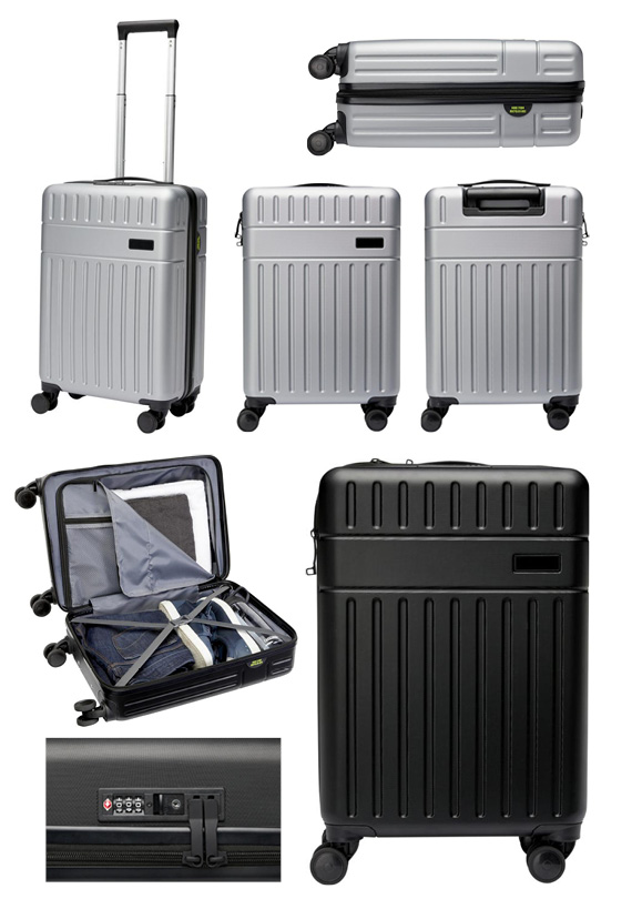 Volum 40L | Materiale GRS Sertifisert resirkulert ABS | BSCI | Vekt 2300g | Farger Sølv eller Svart | Størrelse H55 x B 21,50 x D35 cm | Område for gravering B51 x 13 mm – graveringsfarge lys grå/sølv